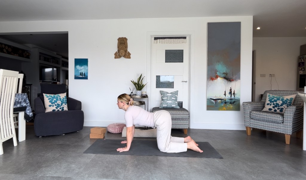 Cat-Cow pose (marjaryasana-bitilasana): Flow between Cat and Cow poses to release tension in the spine. This gentle, rhythmic movement encourages flexibility and alleviates lower back discomfort.