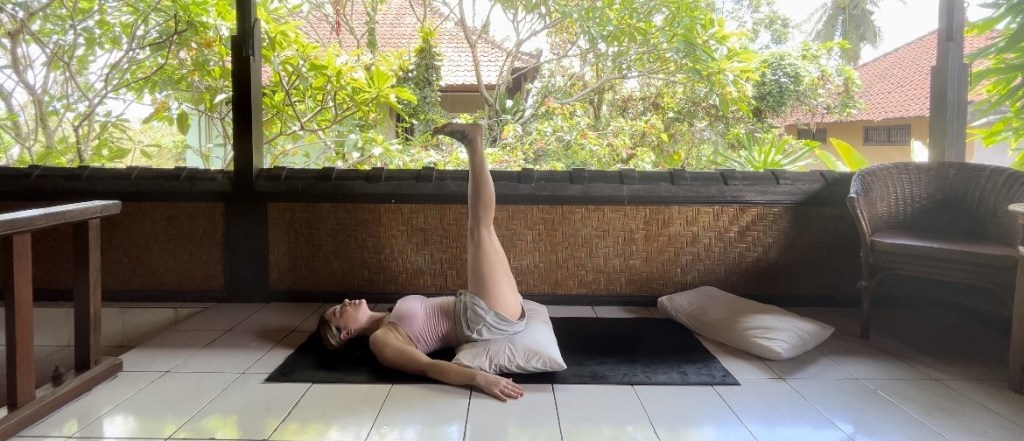 Incorporate restorative, hip-opening poses like Supta Baddah Konasona throughout your practice. Poses like this can provide a deep sense of relaxation, support your body’s natural healing process and offer an emotional release.