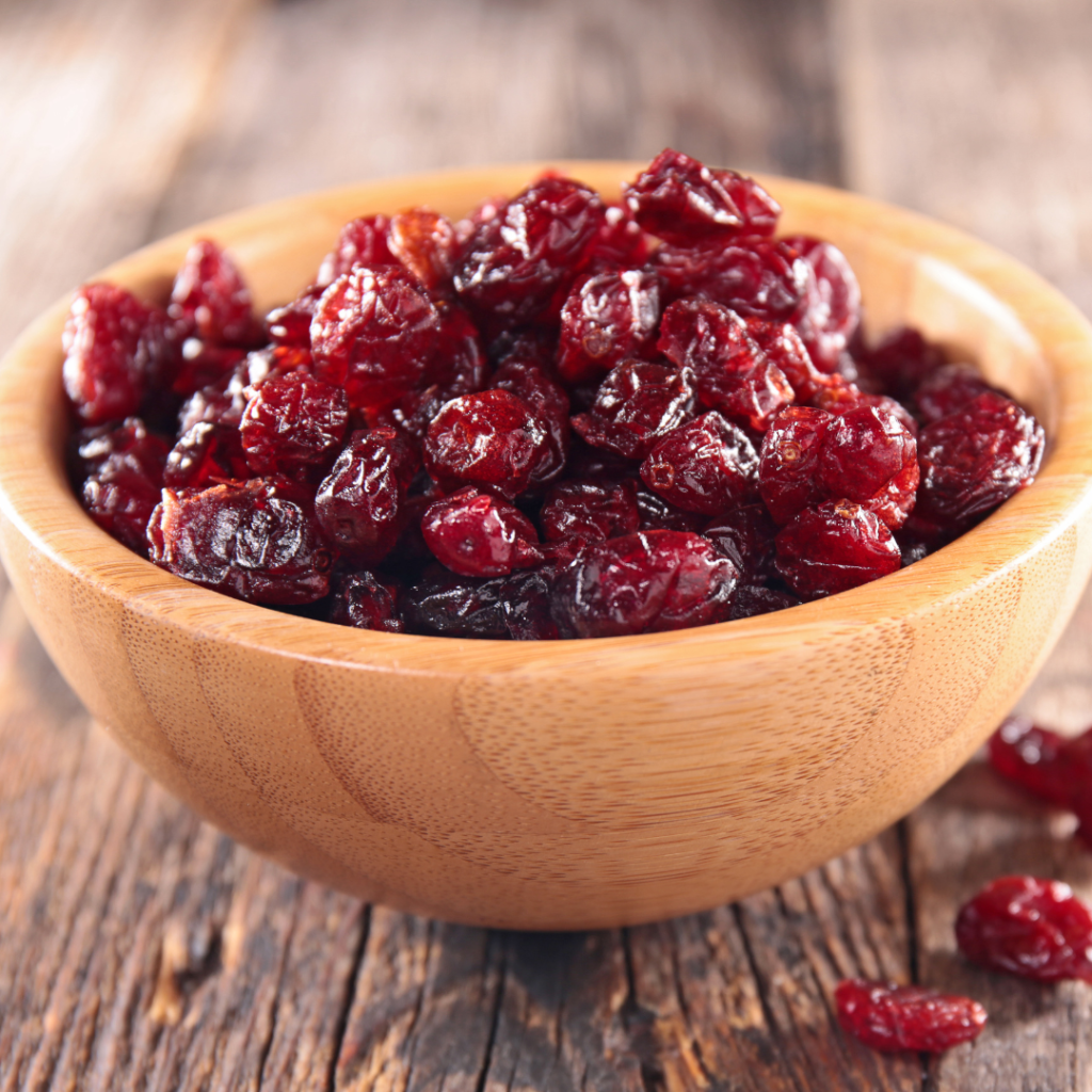 Dried Cranberries: These sweet little dried berries are full of vitamin C and are a rich source of anti-inflammatories, all of which are essential to good health.